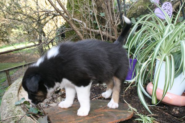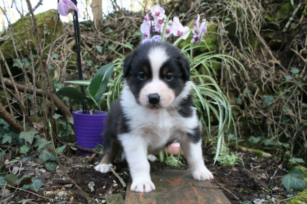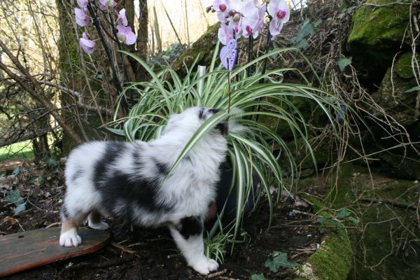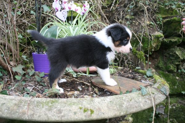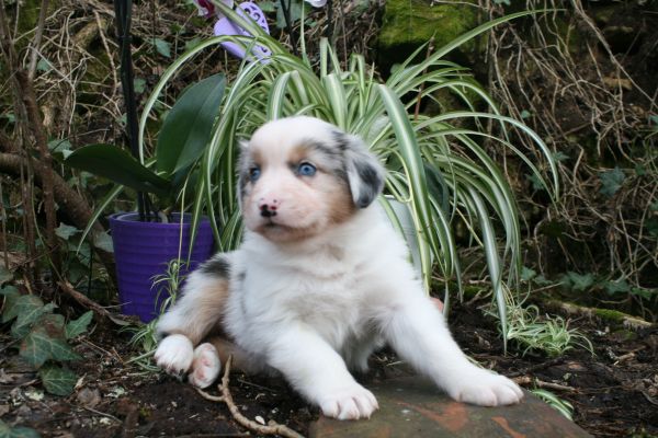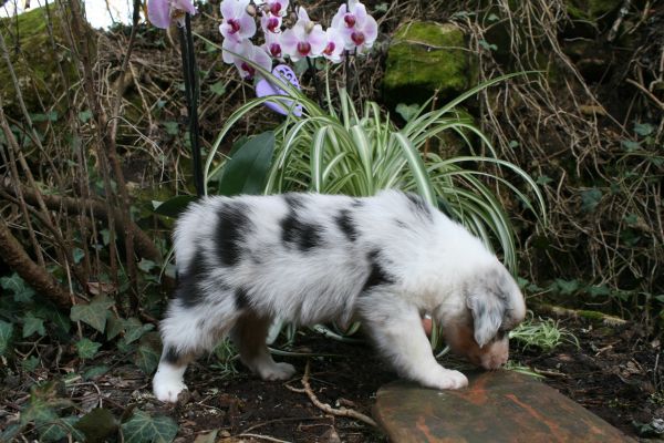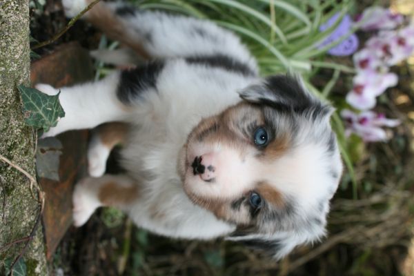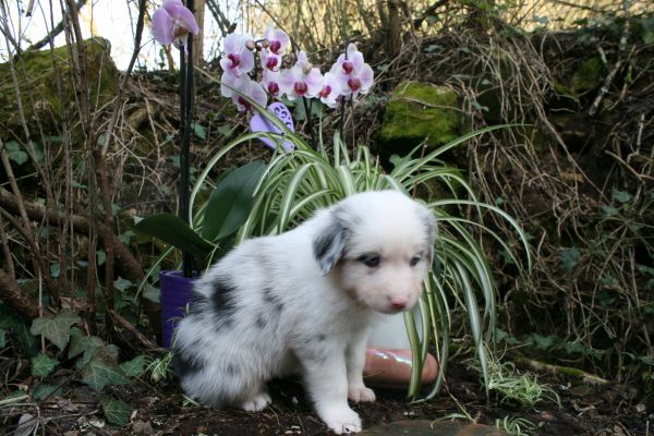 BYANNE est une tres jolie femelle blue merle aux couleurs bien soutenues . yeux bleus clairs ! queue longue .