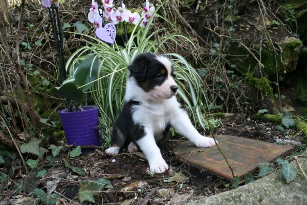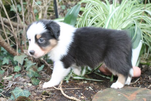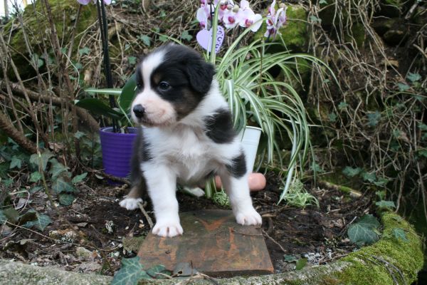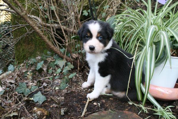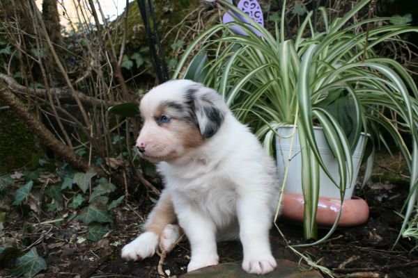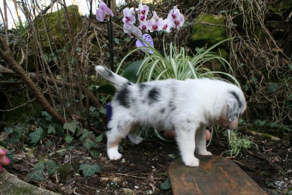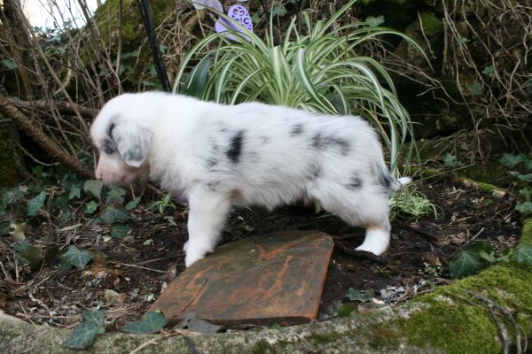 BYANNE est une tres jolie femelle blue merle aux couleurs bien soutenues . yeux bleus clairs ! queue longue .
